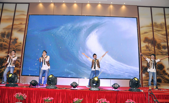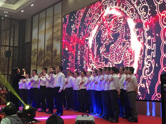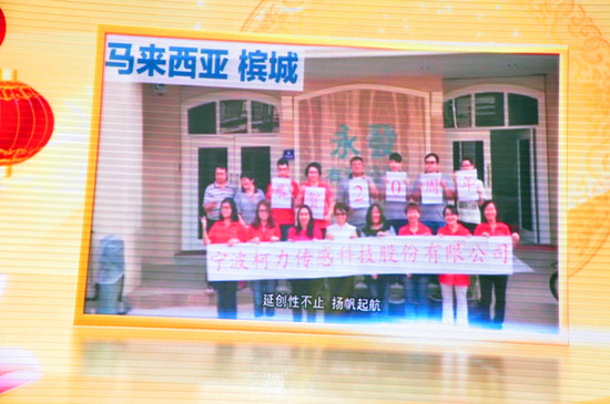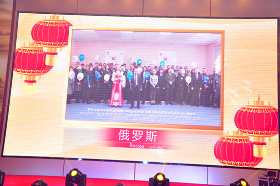 串燒開場舞立即點燃了現(xiàn)場的氛圍。晚宴節(jié)目共分歡迎、感恩、祝福、歡慶4個篇章?!痘丶业穆贰肥枪?jié)目組在3月8日當(dāng)天收集工作人員接站、接機照片,并連夜趕制的暖心視頻,讓嘉賓們感受了一種賓至如歸、回到柯力大家庭的溫暖。一曲《鴻雁》,博得了現(xiàn)場的陣陣掌聲;《光陰的故事》,通過圖片,現(xiàn)場回顧了成長,記錄了友情。緊接著,晚宴現(xiàn)場進行了“20周年貢獻人物頒獎”,大屏幕播放了來自各部門、子公司當(dāng)選人員的主要事跡,充滿了正能量。頒獎之后,老員工代表彭燕經(jīng)理分享了自己20年的心得,并代表老員工們感謝了公司長期以來的關(guān)懷,還感謝了客戶、供應(yīng)商、行業(yè)領(lǐng)導(dǎo)一直以來對公司發(fā)展的支持,最后,她希望新員工們能夠為公司的發(fā)展再接再厲。之后,《一路上有你》,表達了公司對客戶、供應(yīng)商、行業(yè)領(lǐng)導(dǎo)20年來的感激之情;業(yè)務(wù)團隊《真心英雄》大合唱,唱出了精誠協(xié)作、勇往直前的滿腔熱情。當(dāng)晚,國內(nèi)外客戶朋友也紛紛送來美好的祝福和節(jié)目,節(jié)目組收到了來自常州、中國臺灣、加拿大、烏克蘭、美國、哥倫比亞、澳大利亞、南非、伊朗等客戶朋友的賀文;并且,現(xiàn)場播放了來自俄羅斯、巴西、馬來西亞、印尼等國外客戶發(fā)來的視頻祝福及表演節(jié)目,充分體現(xiàn)了20年來公司國際化發(fā)展成果。之后,供應(yīng)商代表的《今夜舞起來》,反映了戰(zhàn)略合作伙伴對柯力20周年慶的美好祝福。中高層領(lǐng)導(dǎo)團隊《感恩的心》合唱,表達了公司對客戶、對供應(yīng)商、對行業(yè)領(lǐng)導(dǎo)的深深感激。研發(fā)團隊《柯力研發(fā)進行曲》,通過改編,體現(xiàn)了研發(fā)創(chuàng)新精神及“靜心敬業(yè)”之精氣。男生四人組《海闊天空》展現(xiàn)了柯力在未來10年、20年發(fā)展中,必將開創(chuàng)一片更加廣闊前景的豪情壯志。當(dāng)晚,除了總公司的節(jié)目之外,四家子公司也各自選派了精心準(zhǔn)備的歡慶節(jié)目:余姚太平洋《包容》個唱、余姚銀環(huán)《愛我中華》合唱,唱出了各自的特色,體現(xiàn)了母子公司文化的互通、融合;沈陽龍騰帶來的二人轉(zhuǎn)《龍騰模仿秀》、安徽柯力帶來的黃梅戲《對花》,讓現(xiàn)場嘉賓感受了地方特色文化,感受了子公司員工的多才多藝,以及他們對總公司滿滿的祝福。最后,老員工《明天會更好》大合唱,更是唱出了老員工的昂揚斗志,以及對柯力的深深祝福之情。為了更好地體現(xiàn)節(jié)目互動性,晚宴專門開設(shè)了互動點歌環(huán)節(jié)和抽獎環(huán)節(jié)。值得一提的是,互動點歌環(huán)節(jié),現(xiàn)場嘉賓踴躍點歌,上臺為大家即興獻唱,并送上美好祝福,使得整個晚宴節(jié)目精彩不斷。抽獎環(huán)節(jié)也邀請了現(xiàn)場嘉賓為大家開獎,使得現(xiàn)場氛圍高潮迭起。最后,晚宴在《難忘今宵》的音樂中進入了尾聲,隨著6組禮炮的鳴響,整個晚宴活動圓滿成功。