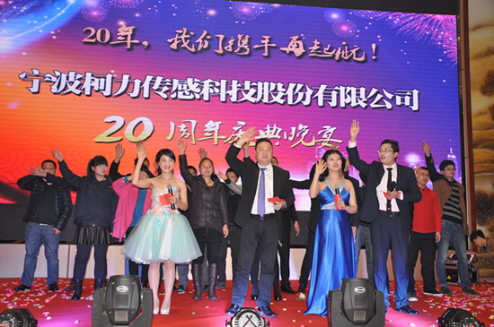 “尊敬的各位來賓、各位朋友、女士們、先生們:在這美好的夜晚,我們迎來了柯力20周年慶典。現(xiàn)在,請大家共同舉杯,祝愿諸位在寧波度過一個美好的夜晚!祝愿諸位工作順利!身體健康!闔家歡樂!萬事如意!”柯董在作祝酒詞之后,與其夫人、公司高層領(lǐng)導(dǎo)團隊副總裁兼品管總監(jiān)林德法、副總裁項勇、副總裁兼安徽公司總經(jīng)理馬形山、研發(fā)中心副主任兼?zhèn)鞲衅鳟a(chǎn)品總監(jiān)、研發(fā)中心副主任兼儀表產(chǎn)品總監(jiān)趙寧、總裁助理陳建鵬、總裁助理鄔立軍、總裁助理兼任系統(tǒng)成套設(shè)備事業(yè)部經(jīng)理胡向光,共同邀請現(xiàn)場各位嘉賓舉杯暢飲。