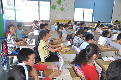 在俞家小學(xué),志愿者團(tuán)隊(duì)受到師生的歡迎,在老師的協(xié)同下分為三組來到三個(gè)班級(jí),向小朋友們發(fā)放“心愿”書籍,陪同小朋友看書、讀書。最后,在小朋友歡笑與感謝聲中,活動(dòng)圓滿結(jié)束。