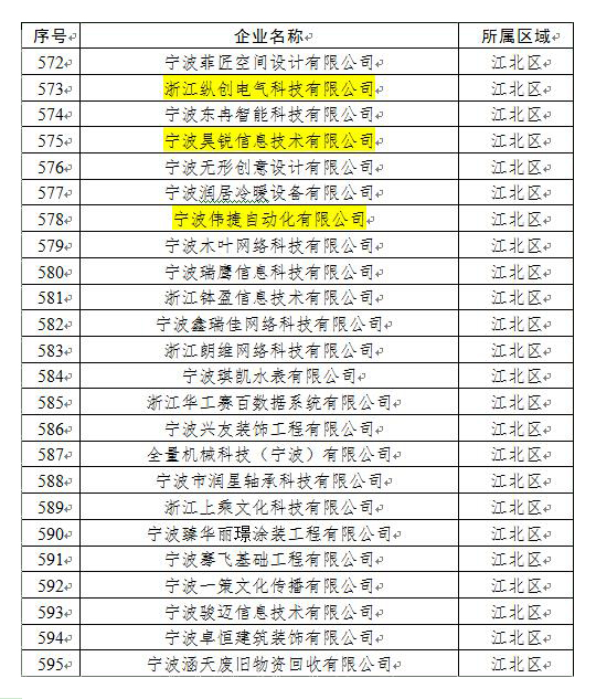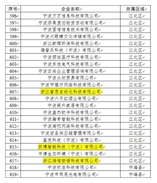 2019年11月7日,寧波市科學(xué)技術(shù)局公布了2019年寧波市第二批創(chuàng)新型初創(chuàng)企業(yè)暨浙江省科技型中小企業(yè)名單,本次全市共計(jì)1237家企業(yè)備案為2019年寧波市第二批創(chuàng)新型初創(chuàng)企業(yè)暨浙江省科技型中小企業(yè),產(chǎn)業(yè)園區(qū)共計(jì)14家企業(yè)進(jìn)入名單,分別是寧波鉑士智能科技有限公司、寧波欣皓源機(jī)械有限公司、寧波智衡物聯(lián)科技有限公司、寧波智唐智能裝備有限公司、寧波沃富物聯(lián)網(wǎng)有限公司、寧波佳文智能技術(shù)有限公司、寧波興為汽車電子有限公司、寧波舸德精密工具有限公司、浙江縱創(chuàng)電氣科技有限公司、寧波昊銳信息技術(shù)有限公司、寧波偉捷自動(dòng)化有限公司、浙江普思自動(dòng)化科技有限公司、歐博智能科技(寧波)有限公司、浙江鴻信安諾科技有限公司。